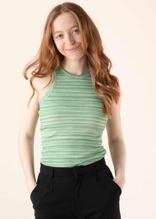 Dünaamiline ja mänguline JJXX topp Forest sobib suvepäevade nautimiseks. Ilma varrukateta topp on soonikkoes, pehme ja elastne ning meeleolu loob šeff pinnadekoor. Modelli pikkus on 174 cm ning kannab suurust S.