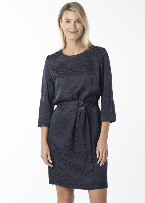 Kairi Vilderson naiste kleit on elegantne ja hästi istuv, sobides ideaalselt pidulikeks sündmusteks. Kleidil on kolmveerand varrukad ja sirge tegumood, mis loovad kerge ja kauni visuaali. Kleidil on pandlaga vöö ning lukk seljal, lisades sellele stiilset ja praktilist elementi. Modelli pikkus on 177 cm ja kannab suurust 38.