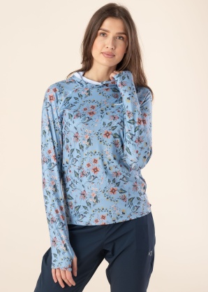 Armas Kari Traa pluus Sanne kannab endas argist mugavust. Lillelise mustriga pluus on kapuutsiga ja raglaanvarrukatega ning lisaväärtusena on toode õhuke ja hingav. Mugavust lisavad pöidlaavad ning esi- ja tagaküljel on tikand. Kandmismugavust pakub materjali elastsus. Modelli pikkus on 178 cm ning kannab suurust S.