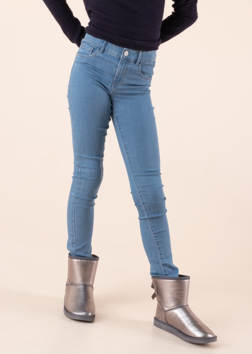 Need lihtsad ning stiilipuhtad, kitsama Skinny lõikega Kids Only teksapüksid on valmistatud LENZING ™ ECOVERO ™ kiust, mis on saadud sertifitseeritud taastuvatest puiduallikatest, kasutades keskkonnasõbralikku tootmisprotsessi ja järgides kõrgeid keskkonnastandardeid. Eest sulguvad need püksid klassikalisel moel tõmbluku ja mugava kinnitusaasaga. Värvlit ääristavad vööaasad, mis lubavad pükse kaunistada ka stiilse vööga. Sisepinnal lookleb aga elastne pingutuskumm, mis võimaldab nööpidega reguleerida värvli pingutuastet nii, et see oleks kandjale sobiv. Mudelil on esiküljel kaks imitatsioontaskut ning paremal pool üks väiksem avatud pesa. Tagaküljel asetsevad kaks avatud taskut. Tänu kanga heale venivusele on tagatud liibuvus. Need teksapüksid ei jäta kandjat hätta ka aktiivsemates oludes. Modelli pikkus on 146 cm ning kannab suurust 146.