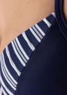 Kihvt, silmapaistev Lauma bikiinirinnahoidja on ideaalne argiseks kandmiseks. Pealispinda ilmestab esiküljelt efektselt triibuline muster ning rinnakorvide keskmes narmastega detail. Rinnahoidja omab mõõdukat polsterdust ning rinnakorvide all asetsevad tugikaared, mis pakuvad täiendavat toestust. Õlapaelu on mugav reguleerida vastavalt kandja soovile. Tagaküljelt kinnitub mugavalt klassikalise plastkinnisega. Modelli pikkus on 176 cm ning kannab suurust 75B.