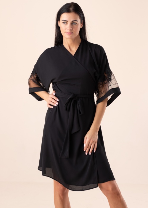 Naiselik Lauma hommikumantel sobib muretuks lõõgastumiseks. Atraktiivne ja kimonovarrukatega hommikumantel on õhuline ning kaasaliikuv. Varrukatel on pits ja keskkohas on seotav vöö. Modelli pikkus on 176 cm ning kannab suurust 36.