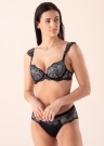 Imekaunis ning lausa haldjaliku tegumoega Lauma rinnahoidja võidab koheselt su südame! Tugevdatud korviosa katab imeline pitskangas, mille sisemuses asetsevad taskutes asuvad eemaldatavad padjad, millega luua push up tegumood. Sametiste tugikaarte keskel paikneb armas dekoratiivkivike. Reguleeritavatele õlapaeltele lisab elegantsust õlgade piirkonda täiendav pitskangas. Elastne pitsist seljaosa kinnitub kaherealise haakkinnitusega. Modelli pikkus on 176 cm ja kannab suurust 75B. Materjal: poüamiid 33%, polüester 12%, puuvill 45%, elastaan 10%. Värv: must.