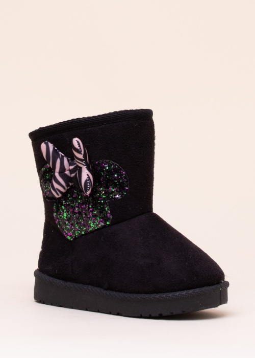 Kihvtid ja silmapaistvad, lapselikud Ugg stiilis Leomil poolsaapad Disney Minnie on ideaalsed külmemal hooajal kandmiseks. Pealispinna valmistamisel on kasutatud tekstiili. Väliskülge kaunistab efektne, sädelusega Minnie kujutis. Kannaosas Minnie kirje. Sisepinda katab soe, paksu karvaga vooder ning kummine välistald soodustab haarduvust pindadega. Suurus 25 jalatsi kaal on 164 g.