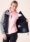 Lihtne ja mugav Luhta kevad-sügisjope Annila on suurepärane valik igapäevaseks kandmiseks nii linnapildis, spordirajal kui looduses! Softshell materjalist pealispind kinnitub eest ühesuunalise lukuga, avar võrkvoodriga paeltega reguleeritav kapuuts sobitub kenasti ümber pea ning pakub tuule ja külma eest varju. Pealiskanga vetthülgavus on 5000 mm ja hingavus 5000g/m²/24h. Esiküljel paiknevad kaks lukuga esitaskut ning brändi logo on nutikalt peidetud kapuutsi paelte pinnale, lisaks ilmestab logo ka vasakut varrukat. Varrukate otstes looklevad elastsed kummid hoiavad kenasti ümber käe, alumise ääre sisemuses paiknev reguleeritav pingutuskumm annab võimaluse kohandada rõivas endale sobivaks. Jope voodrita sisemusel asub praktiline brändi nimega riputusaas. Lahedat must-valget kombinatsiooni täiendavad hõbedased detailid, mis lisavad ülerõivale õrna naiselikkust. A.W.S Active tehnoloogiaga väljatöötamisel on pööratud erilist tähelepanu funktsionaalsusele ja mugavusele, sobides aktiivsemaks tegevuseks kui ka igapäevaseks kandmiseks. Modelli pikkus on 178 cm ja kannab suurust 36. Üldpikkus turjast alumise ääreni on 60 cm.