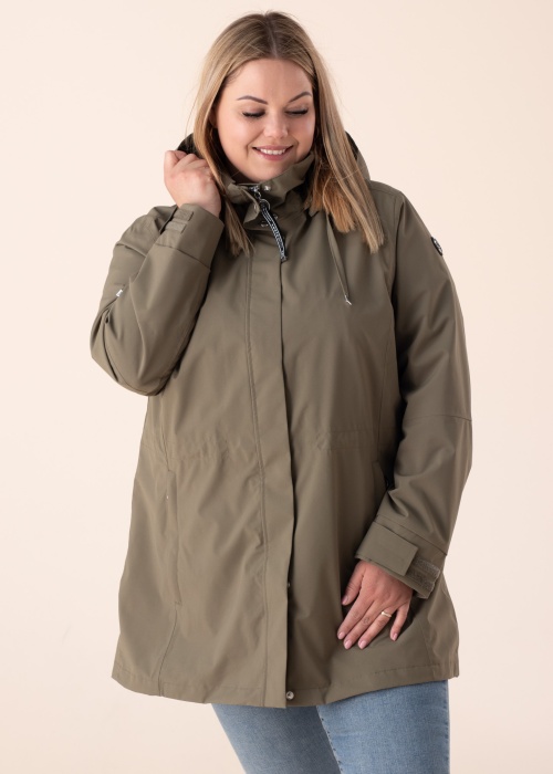 Luhta kevad-sügisparka Erikkala on ideaalne naisele, kes soovib kevadele vastu minna funtsionaalse ja praktilise üleriidega. See on A.W.S. EXTREME toode, mis vastab aktiivsete välitingimustes viibijate vajadustele isegi nõudlikes tingimustes. Märgistus näitab, et õmblused on teibitud, samuti on tuule ja niiskusega arvestatud ning hingava materjali pind on töödeldud vetthülgava viimistlusega. Numbrites on näidud 5000MM vetthülgavust ja 5000g/m2/24H hingavust. Jope on eest suletav lukuga, mida katab trukkidega katteliist, kõrge kraeosa kaitseb tuule ja külma eest ning kapuuts on eemaldatav. Käiste otsad on reguleeritavad krõpsudega ja küljetaskud suletavad rõngaslukkudega. Sisemust vooderdab vööst ülemises osas võrkkangas ja vööst allapoole jäävas osas sile polüester, vasaku hõlma siseküljel on lukuga põuetasku ning taljesse võimaldavad siluetti kohandada pingutuskummid. Tagaküljele on soovi korral võimalik trukkidega moodustada lõhik. Modelli pikkus on 167 cm, kannab suurust 46+. Jope pikkus turjast alaservani mõõdetuna on 83 cm.