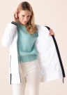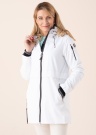 Luhta kevad-sügisjope Hiekka loob igati viisaka, kuid samas ka sportliku väljanägemise! A.W.S Active tehnoloogiaga on väljatöötamisel pööratud erilist tähelepanu funktsionaalsusele ja mugavusele, sobides aktiivsemaks tegevuseks kui ka igapäevaseks kandmiseks. Jope pealispind on töödeldud vetthülgavaks PFC vaba viimistlusega, kõik õmblused on teibitud veekindlaks, takistamaks niiskusel jope sisemusse sattumist ning tuulekindel materjal tagab optimaalse tuulekaitse ja soojuse. Parameetrid veehülgavusele ja hingavusele on 5000 mm/5000 g/m²/24h. Hõlmad on avatavad kahesuunalise tõmblukuga ning kõrgem krae läheb sujuvalt üle hubaseks kapuutsiks, mida on lihtne reguleerida tunnelkummide abil. Külgedel mugavad lukkudega taskud ning jope varrukad on reguleeritavad takjakinnitusega, mida täiustavad elastsed soonikud sisepinnal. Vasakpoolsele varrukale on paigutatud lukuga tasku ning parempoolse tasku lukul olev kaunistus on eemaldatav. Sisemuses vooderdab ülemist kehaosa ja kapuutsi polüestrist võrkvooder ning varrukaid ja alaosa siledam polüesterkangas. Modelli pikkus on 178 cm ja kannab suurust 36. Pikkus turjast alumise servani antud suurusel on 81 cm.