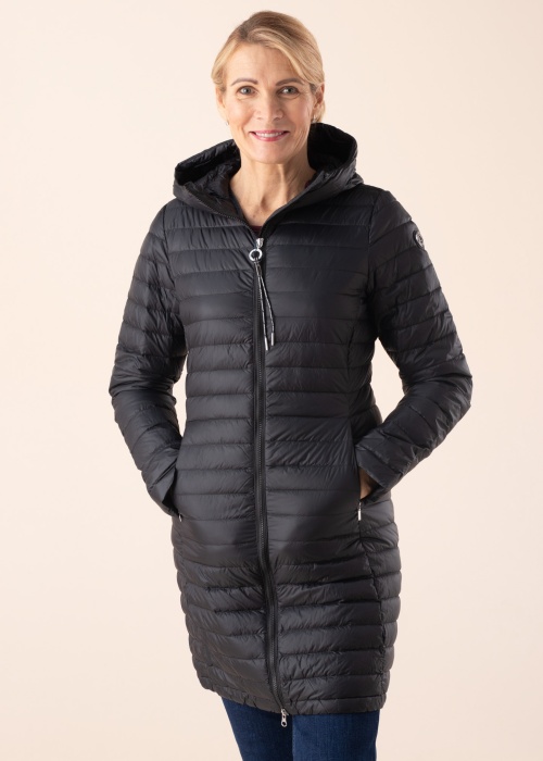 Kerge ja hästi istuv Luhta sulemantel Inansaari annab tunde, et oled hoitud ja pakub kaitsvat soojust. A.W.S Active tehnoloogiaga on disainimisel pandud erilist rõhku funktsionaalsusele ja mugavusele, et saaksid seda igas olukorras kasutada. Hõlmad kinnituvad lukuga, praktilised taskud paiknevad külgedel ja varrukaotstes on avatud tegumood. Külma hoiab eemal kohev soojustus. Meeldiva puudutusega kangas võimaldab kandmist nautida. Kapuuts on fikseeritud. Modelli pikkus on 178 cm ning kannab suurust 36.