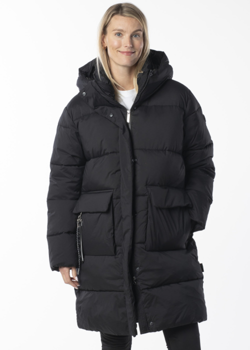 Luhta naiste talvemantel Inari on atraktiivne ja mugav valik külmadeks päevadeks. Mantli tepitud tegumood ja vetthülgav materjal tagavad, et püsid soojas ja kuivas ka kõige karmimates ilmastikutingimustes. Eesmine lukk, kumm varrukaotstes ja pingutuskumm kapuutsil lisavad praktilisust, samas kui esiküljel olevad taskud ja lukuga põuetasku sisemuses pakuvad piisavalt hoiuruumi. A.W.S Active tehnoloogia ja A.W.S Stretch materjal tagavad täieliku liikumisvabaduse, samal ajal kui THERMOLITE EcoMade Fiber, mis on valmistatud taaskasutatud PET-pudelitest, hoiab sind soojas. Modelli pikkus on 177 cm ja kannab suurust 36.