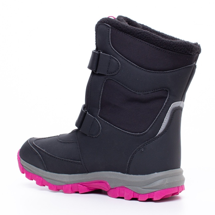 Soojad ja kerged, mugavad ning hubased tüdrukute Lundeberg talvesaapad Klippen on valmistatud vastupidavast kunstnahast ja vetthülgavast tekstiilist sääreosas. Hästi lihtsad jalga panna tänu kahele käepärasele takjapaelaga kinnitusele välispinnal. Sisemuses õdus fliisjast tekstiilist vooderdus katab ka sisetalda. Kumjast materjalist välistald on hea sügava mustriga, omades head haardumist erinevatel pindadel. Nähtavust aitab hämaral ajal suurendada helkurdetail tagakannal. Kaal suurusel 35 on 384 g. Värv: must/roosa/hall