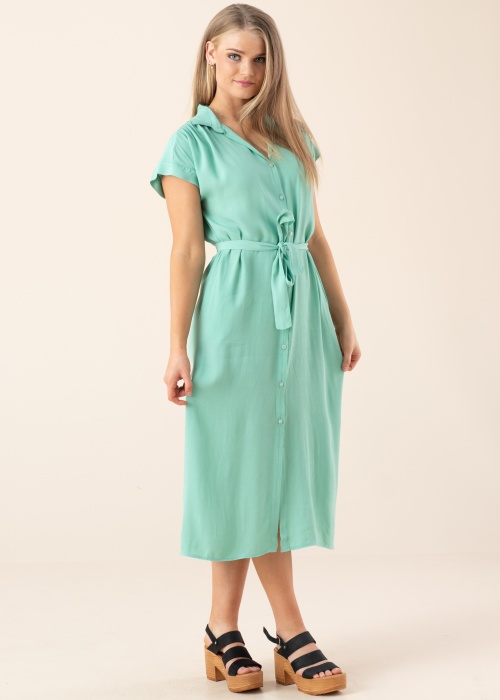 Maitsekas Mexx särkkleit sobib suvepäevade nautimiseks. Naiselik kannaga kraega särkkleit on lendlev ning kerge. Esiküljel on nööpkinnitus, külgedel avatud taskud ja keskkohas seotav vöö. Modelli pikkus on 168 cm ning kannab suurust S.