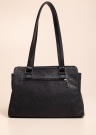 Reljeefse lillemustriga Nabo käekott igapäevaseks kandmiseks Pealt lukuga avatav. Avaras sisemuses peitub kaks sahtlit, mida eraldab teineteisest kunstnahast ja pealt lukuga tasku. Siseküljel lukuga lisatasku. Pehmed kandesangad on piisava pikkusega nii üla peal kui ka käes kandmiseks. Esiküljel metalne brändi märgis. Koti mõõdud: kõrgus 23 cm, laius 30 cm, põhja laius 12 cm. Värv: must