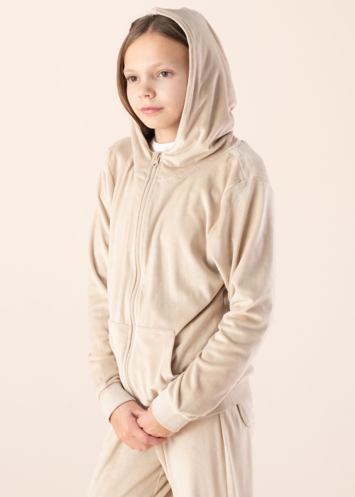 Mõnus Name It Kids lukuga pusa Najala sobib vabaaja veetmiseks. See sametine lukuga pusa on kapuutsiga ning õhema tegumoega. Esiküljel on avatud taskud ja varrukaotstes kui ka all servas on soonikud. Modelli pikkus on 152 cm ning kannab suurust 146-152.