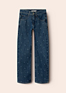 Name It Kids tüdrukute teksapüksid Rose on moodne valik, mis paistab silma oma sirge tegumoega. Need püksid on valmistatud mitte venivast denimist, pakkudes klassikalist Regular Straight lõiget, ning neid täiendab lukk värvlil ja nööp välisküljel. Esi- ja tagaküljel asuvad avatud taskud ning ees säravad kivikesed lisavad sära, samas kui sisemuses olev tunnelkumm tagab mugava istuvuse.