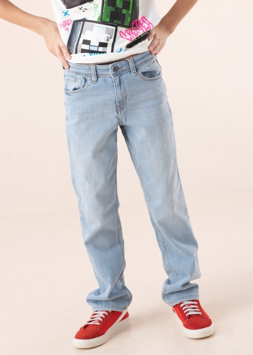 Name It Kids teksapüksid Ryan on õige valik, kui hindad riiete juures mugavust ja praktilisust! Pretensioonitud teksapüksid on sirgete säärtega ja avara istuvusega. Värvel kinnitub nööbi ja lukuga ning esi- ja tagaküljel on avatud taskud. Ümbermõõtu võimaldab reguleerida siseküljel paiknev nööpavadega tunnelkumm. Modelli pikkus on 153 cm ning kannab suurust 152.