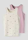 Name It Mini tüdrukute maika Hearts 2p on pehme ja elastne argipäevaseks kandmiseks mõeldud komplekt, mis sobib mugavalt lapse aktiivseks päevaks. Ümara kaeluse ja ilma varrukateta lõikega maikad pakuvad head liikumisvabadust ning istuvad kehasõbralikult. Pealispinnal olev põnev südame-muster lisab rõivale mängulisust ja teeb selle lihtsasti sobitatavaks erinevate riietustega.