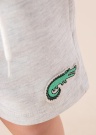 Lihtsad Name It Mini shortsid Dike sobivad suviseks kandmiseks. Need mugavad mõnusalt pehmed shortsid on elastse kummivärvliga ning laiade säärtega. Külgedel on avatud taskud, värvlil seotavad paelad ja vasakul säärel vahva pilt. Ümbermõõtu võimaldab reguleerida siseküljel paiknev nööpavadega tunnelkumm. Modelli pikkus on 98 cm ning kannab suurust 98.