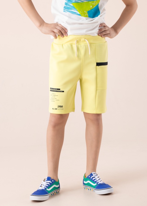 Need julged ja isikupärased Name It shortsid sobivad oma värvilisuse tõttu suurepäraselt suveaja nautimiseks! Pükste kummiga elastne vöö kinnitub välispinnalt looklevate paeltega. Esikülge täiendab lukuga pealistasku ning vasakul säärel looklev tekst, mis harmoniseerub tasku lukk-kinnituse värviga. Mõnusalt elastne kangas liigub kehaga vabalt kaasas ning on kandmisel pehmed ning mugavad. Modelli pikkus on 146 cm ja kannab suurust 152.