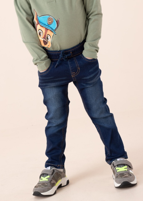 Name It teksapüksid Robin on värvitud indigo värvainega, mis annab originaalse teksavärvi, mis tuhmub pesemise ajal loomulikul moel. Lihtne kummivärvel on eest nööridega seotav ja siseküljelt nööpaasadega tunnelkummi abil kohandatav vastavalt lapse taljele. Esiküljel paikneb kolm ja tagaküljel kaks avatud taskut. Täiendavat mugavust lisab materjali pehmus koos elastsusega. Modelli pikkus on 104 cm ja kannab suurust 98.
