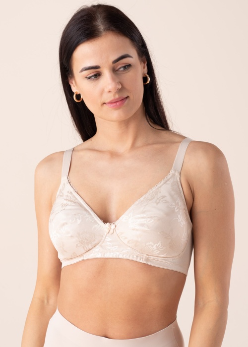 Kauni lillemustriga Naturana rinnahoidja loob kandmisel ääretult mugava olemise. Laiemad õlapaelad ning alaservas olev elastne kumm tagavad pesule hea hoidvuse ning rinnahoidja kinnitub seljal kolmerealise ja kolmeastmelise konkskinnitusega. Pitsäärisega rinnakorvi sisemuses mõnusalt pehme puuvillane kangas, omades pehmet polsterdust. Modelli pikkus on 167 cm ja kannab suurust 85D.