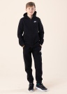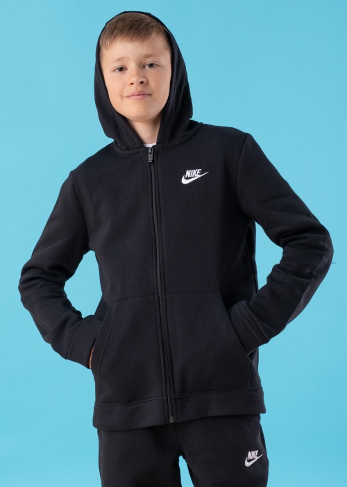Ütlemata soojad ja mugavad Nike dressid poistele on stiilsed ning sportlikud. Standard Fit lõike ja kapuutsiga dressipluus on eest lukuga avatav ning kahe avatud küljetaskuga. Varrukate otstes ja all servas on pehmed soonikud. Dressipüksid on mugavalt laia kummivärvliga, mis on eest paeladega reguleeritav. Kaks küljetaskut on avatud, milledest vasakpoolse all on brändi logo. Säärte otstes elastne soonik. Sisemuses on mõlemal tõeliselt õdus uhutud sisu. Modelli pikkus on 153 cm ja kannab suurust L/147-158. Materjal: puuvill 80%, polüester 20%. Värv: must
