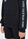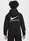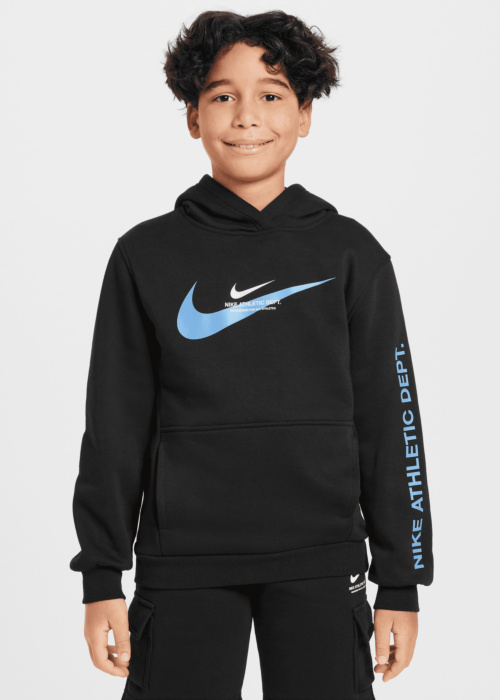 Nike poiste pusa on sportlik ja mugav valik igapäevaseks kandmiseks. Pehme materjal ja kapuuts pakuvad lisamugavust, samas kui brändi logo esi- ja tagaküljel ning kiri varrukal lisavad stiili. Esiküljel asuv avatud tasku on praktiline detail, mis sobib ideaalselt väikeste esemete hoidmiseks.