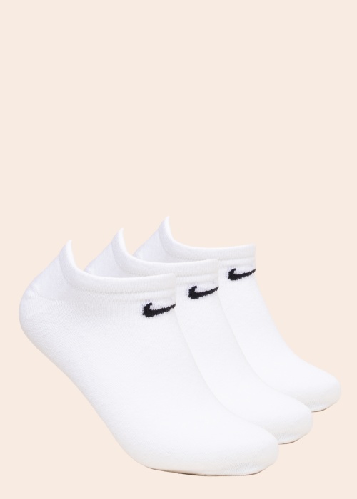 Puuvillased madalad Nike sokid on ideaalselt ketside sisse ja jäävad peaaegu märkamatuks! Pahkluu ümber on kitsas soonikuriba, mis hoiab sokke kindlalt paigal ega lase neil alla libiseda, pealset kaunistab brändi logo. Komplekt sisaldab 3 paari!