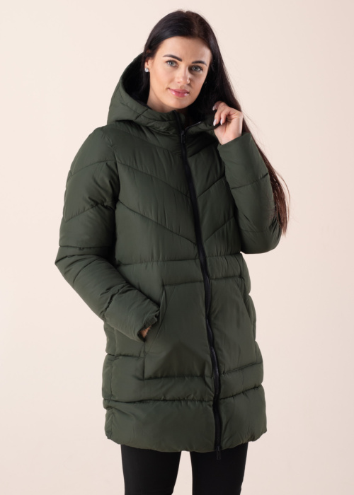 Pikema sirge lõikega ning lihtsa disainiga Noisy May jope Dalcon on ideaalne kandmiseks vabal ajal. Eest sulgub jope kahesuunalise luku abil ning kõrgem kraeosa on ühendatud fikseeritud kapuutsiga, mis pakub kaitset jahedate tuulte eest. Jope külgedel asetsevad avatud tegumoega taskud ning sisemust katab sile polüesterkangas. Toode kuulub brändi BeGreen kollektsiooni, mille tootmiseks on kasutatud keskkonnale paremaid materjale, tähistades Noisy May pühendumust pakkuda jätkusuutlikke rõivaid. Modelli pikkus on 176 cm ning kannab suurust S. Pikkus turjast alaservani on antud suurusel 84 cm. Materjal: pealispind polüester 100%, sisepind taaskasutatud polüester 100%, soojustus taaskasutatud polüesterkiud 100%. Värv: roheline.