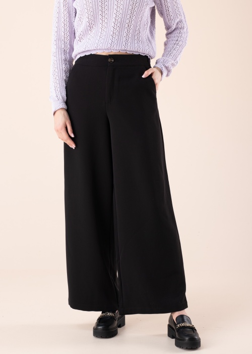 Hetke trende jälgiv avara ja laialõikega Noisy May püksid on suurepärane valik enesekindlale naisele, kes armastab katsetada uute ja põnevate stiilidega. Kõrge High Waist pihaosa kinnitub klassikalise lukk-kinnituse ja nööbiga, seljaosa on venivast materjalist, et vöökoht oleks mugav ja hoiaks ideaalselt kehasse. Langevast materjalist pükste külgi ilmestavad kaks avatud taskut, tagumisel küljel asetsevad kaks sisetasku imitatsiooni. Kanna julgelt aasta läbi erinevate jalanõudega! Modelli pikkus on 177 cm ja kannab suurust S-32.