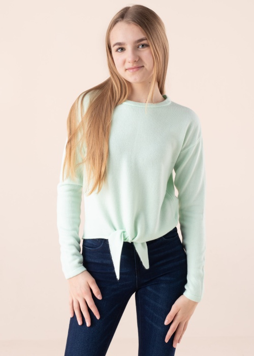 Malbe Only kampsun Amalia sobib erineva iseloomuga päevadesse. Tütarlapselik lühema kehapikkusega kampsun on meeldiva puudutusega ning pehme. All servas paikneb seotav pael. Modelli pikkus on 147 cm ning kannab suurust 146.