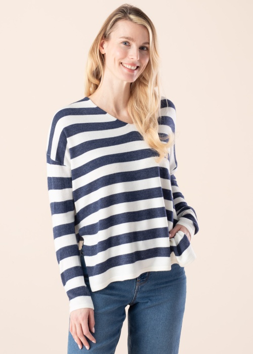 Argine Only kampsun Amalia on lihtne ja stiilipuhas valik igaks päevaks. Triibulise mustriga v-kaelusega kampsun on tagant pikema tegumoega ja mõnusalt pehme. Pilku püüavad lõhikud külgedel. Kogu päeva kestev liikumismugavus on garanteeritud! Modelli pikkus on 177 cm ning kannab suurust S.