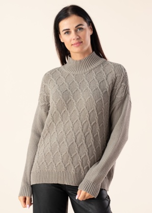 Kena Only kampsun Klara lubab end hästi tunda igal pool. See pehme kampsun on stiilne ja avara istuvusega ning pilku püüab reljeefne muster esiküljel. Varrukaotstes kui ka all servas on soonik. Modelli pikkus on 176 cm ning kannab suurust S.