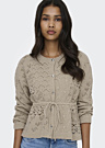 Only naiste kardigan Elke Life on ümara kaeluse ja nööpkinnitusega ees, pakkudes stiilset ja kena ilmet igapäevaseks kandmiseks. Kootud ning kergelt läbikumav materjal koos reljeefse mustriga pealispinnal lisab tekstuuri ja elegantsi. Keskkohas seotav pael võimaldab istuvust reguleerida ning teeb kardigani sobivaks vabaaja veetmiseks.
