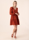 Only kleit Frida on mõnusa avara tegumoega, olles hästi langev ja kauni pitsmustriga. Stiilsete pikkade varrukatega kleit on naiseliku V- kaelusega ja seelikuosast kaunite lendlevate volangidega. All on pehmest polüestrist vooder. Modelli pikkus on 177 cm ja kannab suurust S. Pikkus turjast alumise servani on 90 cm.