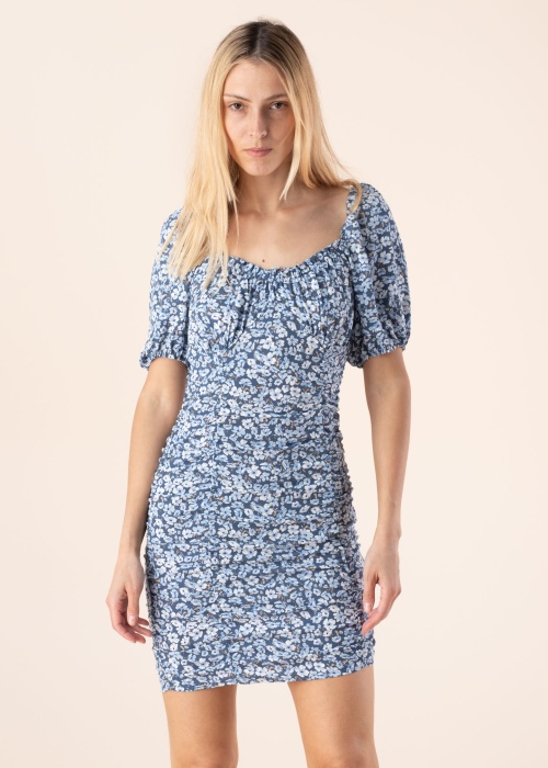 Lillemustriga Only kleit Fuchsia on loodud keha embama ja figuuri rõhutama! Kangas on seestpoolt kroogitud, mis aitab tootel kaunilt kehasse hoida ning moodustab pisikesi voldikesi. Kleidil on küljel peitlukuga kinnitus. Mahulisi puhv-varrukaid võid kanda nii õlgade peal kui õlgu paljastavalt. Kaeluse keskel on peenikesed paelad, mille saab soovi korral sõlmida kaela taha. Modelli pikkus on 177 cm ja kannab suurust S.
