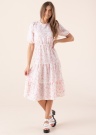 Ääretult romantilise hõnguga Only kleit Mira lausa õhkub naiselikkusest ning sobib fantastiliselt suvehooajal kandmiseks! Õrna lillemustriga lendlevat tegumoodi täiendavad puhvis varrukad, mille elastne äär hoiab kenasti ümber käte. Keskkohas looklev elastne kumm hoiab mugavalt ümber keha, alt laienevatest paanidest koosnev seelikuosa loob elegantse mulje. Kleidi silmapaistvus asub avatud seljaosal, mille saab siduda kaunilt kehasse kahe paelkinnituse abil. Kleidi armas ning tütarlapselik olemus võidab koheselt südame. Modelli pikkus on 174 cm ja kannab suurust S. Kleidi üldpikkus on 116 cm.
