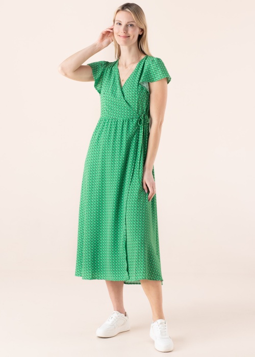 Silmapaistev ja suvine Only kleit Naomi eristab sind hallist massist. Hõlmik lõikega kleit on üle põlve pikkusega, kerge ja hästi langev. Keskkohas on seotav pael ning silmailu lisab mänglev muster. Modelli pikkus on 177 cm ning kannab suurust S.