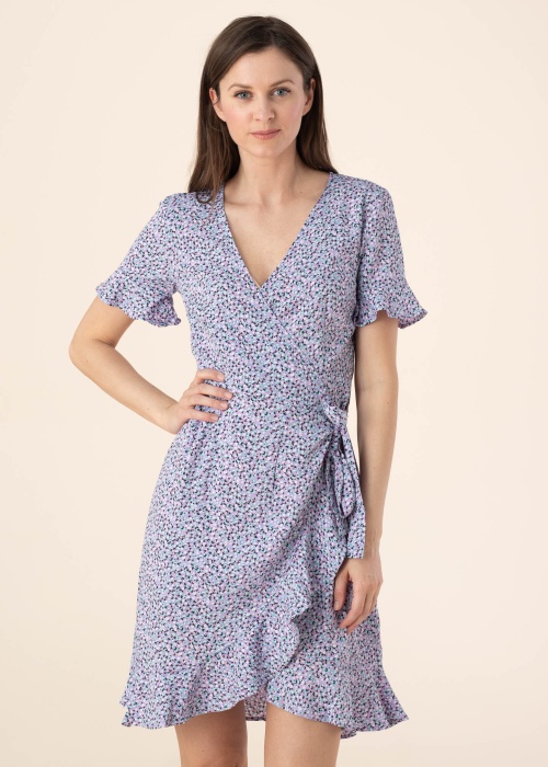 Naiselik Only kleit Olivia sobib igapäevaseks kandmiseks kodus, tööl kui ka puhkehetkel. Suvine hõlmiklõikega kleit on taljesse hoidev, õhuline ja kerge. Ilmekust lisavad veetlevad satsid nii varrukaotstes kui ka all servas ning vasakul küljel on seotavad paelad. Silmailu lisab mänglev muster. Modelli pikkus on 177 cm ning kannab suurust 36.