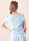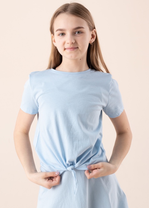 Only lühikese varrukatega pluus May sobib valatult päikesepaistelisel suvepäeval kandmiseks! Armsas värvis pluuse alumisel äärel asetseb seotud lips, mis lisab rõivale tütarlapselikku hõngu. Ümar kaelus mugavdab rõiva selgapanemist, pehme ning elastne puuvill on puudutusel pehme ning mugav. Kombineeri juurde ka sobiv seelik! Modelli pikkus on 147 cm ja kannab suurust 146.
