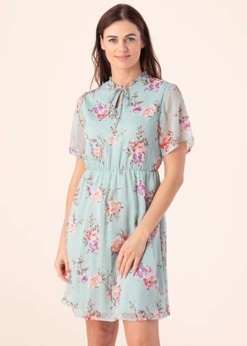 Armas Only kleit Aida ei vea sind alt. Malbe lillelise mustriga kleit on õhuline ja kerge. Varrukad on läbikumavad , kaelusel on seotavad paelad ning keskkohas on kumm. Modelli pikkus on 176 cm ning kannab suurust S.