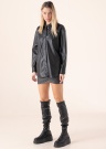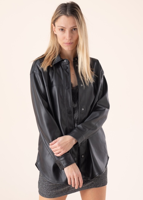 Nahkimitatsiooniga Only pluus Anne sobib stiiliteadlikule naisele. See äge pluus on trendikas ning nooruslik. Eest kinnitub trukkidega ning varrukaotstes on trukid. Kandmismugavust lisab materjali elastsus. Modelli pikkus on 177 cm ning kannab suurust S.