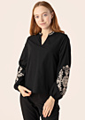 See Only naiste pluus on sarmikas ja avara istuvusega, pakkudes mugavust ja stiili igaks päevaks. Pluusil on õhukesed puhvvarrukad ning kaelust kaunistab kaunis tikand, mis lisab elegantsi. Modelli pikkus on 174 cm ja kannab suurust S.