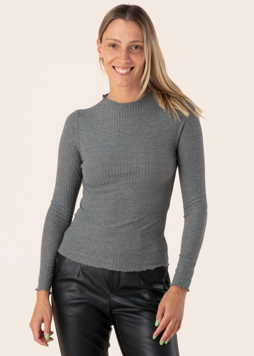 Only naiste pluus Emma on liibuv ja soonikkoes, pakkudes mugavat ja stiilset välimust. Elastne materjal tagab suurepärase istuvuse ning sobib ideaalselt argiseks kandmiseks. Pluusi servas olevad iludetailid lisavad sellele elegantse aktsendi. Modelli pikkus on 177 cm ja kannab suurust S.