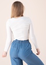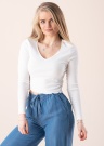 Lühema Cropped lõikega ning V-kujulise avarama kaelusega Only pikkade varrukatega pluus Oda on ideaalne argiseks kandmiseks soojema hooaja saabudes. See elastsest ribbed kangast valmistatud topp tõmbub mugavalt ümber kandja keha. Käiste otstes ja pluusi alaservas looklevad efektsed satsid, mis annavad üldmuljele neiulikkust. Modelli pikkus on 169 cm ning kannab suurust S.
