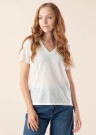 Kena Only pluus Tanja sobib ideaalselt igapäevaseks kandmiseks. Õhema tegumoega pluus on v-kaelusega ja läbikumav , ilmekust lisavad lõhikud välisküljel. Sobita oma lemmikteksadega ja tunned end enesekindlana. Modelli pikkus on 174 cm ning kannab suurust S.