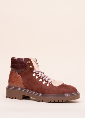 Only poolsaapad Beth on kihvtid ja nooruslikud! Pahkluusaabaste pealne on valmistatud sametisest tekstiilist ning kanda ja pahkluuümbrust ilmestab erineva mustriga kunstnahk. Jalgapanekuks on peal stiilsete kuldsete aasadega paelkinnis, millel on laiemad mustrilised paelad ja mille all olev tõmbekeel on kaetud lambavillalaadse karvase tekstiiliga. Ka kogu sisemus ning pehmendusega sisetald on kaetud sama lambavilla meenutava tekstiilvoodriga, mis on mõnusalt soe ja sobib ka külmemate ilmadega kandmiseks. Läbiõmmeldud vahetalla viimistluse soovitame katta mesilasvahaga, et takistada niiskuse sattumist jalatsi sisemusse. 4,5 cm kõrgune kontsaga välistald on pöiaosas meeldivalt painduv ning selle sügav tallamuster aitab vältida libisemist.