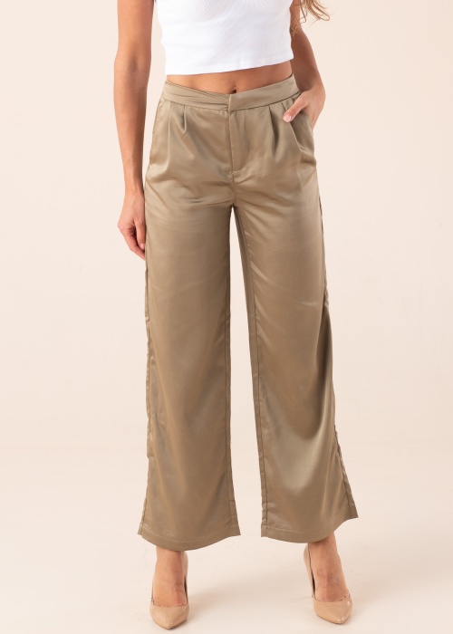 Läikivast siidist Only püksid Mayra on naiselikud ja stiilsed, sobides nii kontorisse kui ka õhtuseks ürituseks. Pükstel on sirged sääred, keskmise kõrgusega vöökoht ja külgedel avatud taskud. Värvel kinnitub haagi ja lukuga. Modelli pikkus on 178 cm ja kannab suurust 36/32.