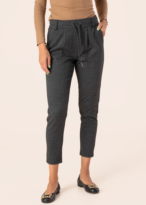 Only naiste püksid Poptrash-GOZI on ajatu ja viisakas valik, mis sobib igapäevaseks kandmiseks. Pükstel on 7/8 säärepikkus ja elastne kummivärvel, mis tagab mugavuse ja hea istuvuse. Tunnelpael värvlil ja avatud taskud külgedel lisavad praktilisust, samal ajal kui imitatsioontaskud taga annavad stiilse välimuse. Elastne materjal muudab need püksid usaldusväärseks ja klassikaliseks valikuks igale naisele. Modelli pikkus on 177 cm ja kannab suurust S-32.