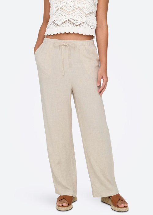 Only naiste püksid Siesta on mõnusad ja suvised, laiad säärtega ning nahasõbralikust materjalist, et tunneksid end kogu päeva vältel vabalt. Kumm värvlil ja tunnelpael värvlil aitavad pükse mugavalt kohandada ning hoiavad istuvuse stabiilsena. Avatud taskud esiküljel lisavad praktilisust, et saaksid väiksemad vajalikud esemed kiiresti käepärast hoida.