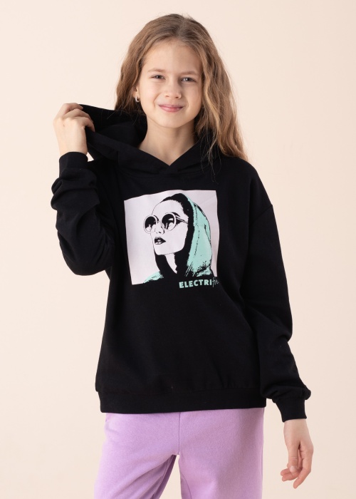 Stiilne ja äge Only pusa Miley on mugava avara lõikega ning valmistatud õhemast dressikangast, mille loomisel on kasutatud BCI tunnustusega vastutustundlikult kasvatatud puuvilla. Kapuutsiga pusa varrukaotstes ning alaservas on soonik, mis hoiab mugavalt ümber kandja keha ning sisemus on pehme uhutud pinnaga. Esiküljele lisab aktsenti kihvt pilt. Modelli pikkus on 142 cm ning kannab suurust 146/152. Materjal: BCI tunnustusega puuvill 60%, polüester 40%.